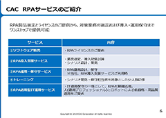 本資料では2019年時点の市況を踏まえたRPAの展望に関する見解と、CACのRPAのサービスを紹介しています。